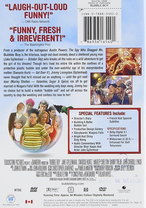 Amazon Com Bubble Boy Jake Gyllenhaal Swoosie Kurtz Marley Shelton Danny Trejo John Carroll Lynch Ever Carradine Verne Troyer Dave Sheridan Brian George Patrick Cranshaw Stephen Spinella Geoffrey Arend Beetlejuice Fabio Ping Wu
